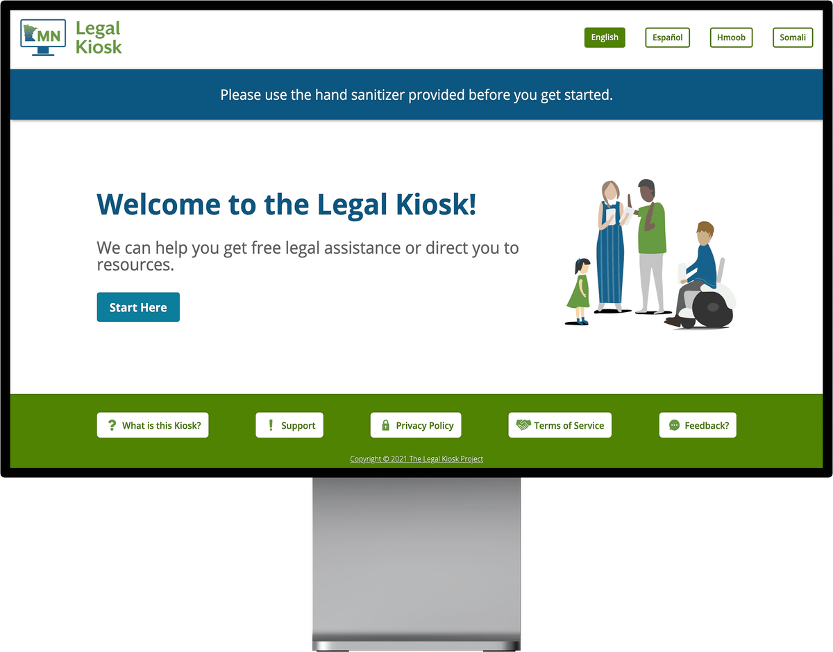 The COVID-19 pandemic and public health emergency have moved the legal system virtual, creating a digital divide that has disproportionately impacted the communities served by Minnesota Legal Aid. Access to the legal system and a chance at justice is only available to those with the means and resources to use technology. To address this digital divide, the Minnesota Legal Services Coalition requested CARES Act funds to give communities access to civil justice by creating a statewide network of legal kiosks to be stationed in a variety of court, agency, non-profit, and other community locations.